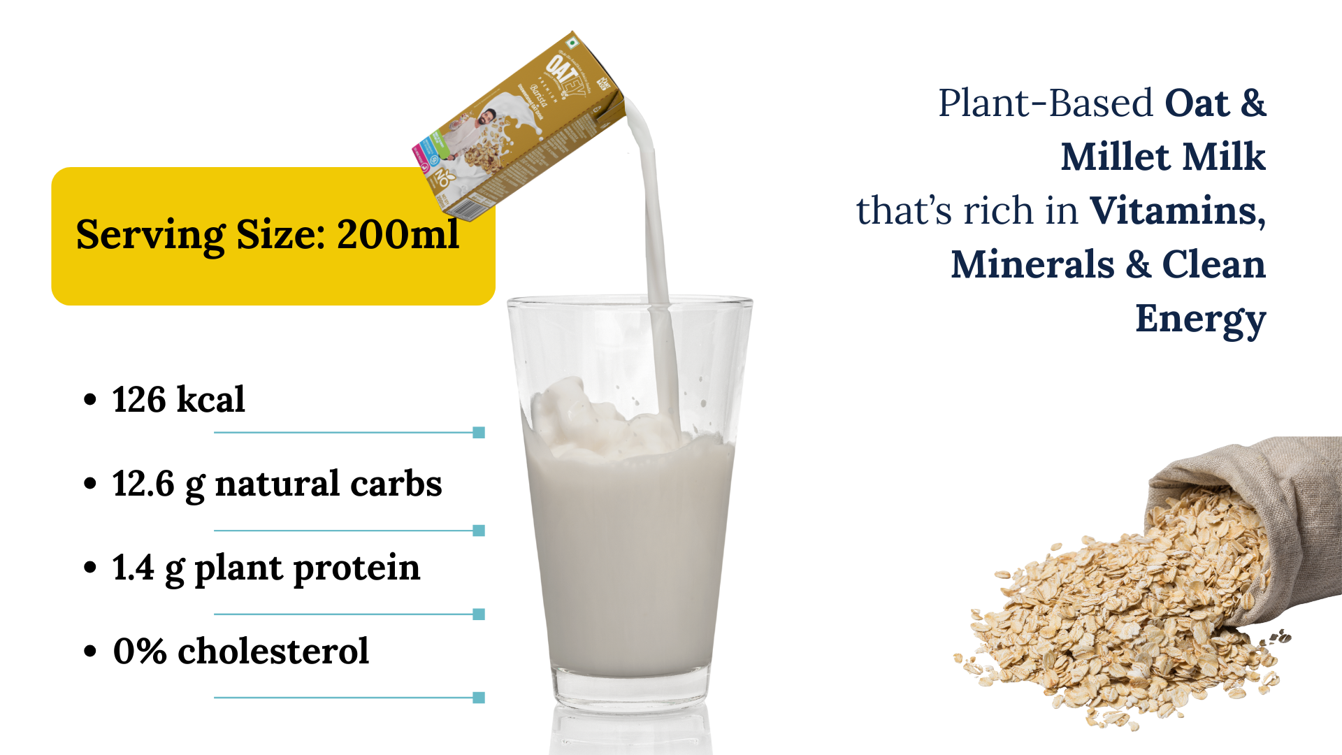 A deliciously smooth, dairy- free alternative to traditional milk, powered by real oats, almonds, and a dash of natural goodness.