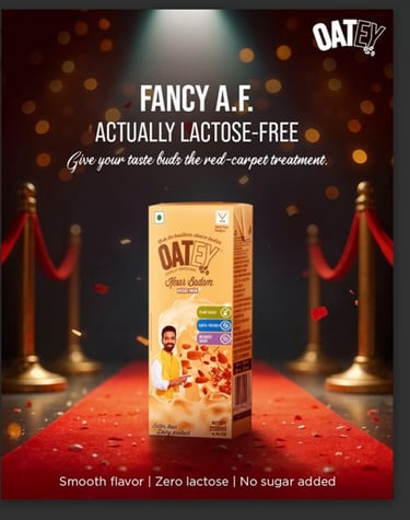 Oatey offers Caramel Coffee Oat Drink, Barista Oat Milk, Chocolate Oat Milk, Kesar Badam Millet Milk, and Assorted Packs.